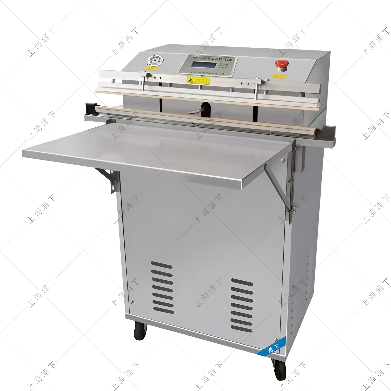 本包裝機工作步驟:夾緊包裝袋→抽真空→充氮氣(選配)→熱合→冷卻→熱合結(jié)束
